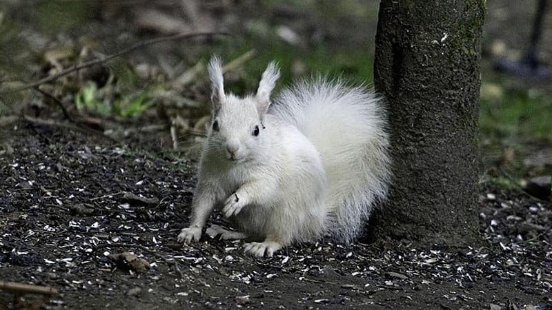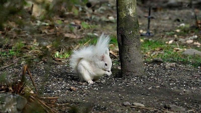 Белка пришла погостить во двор его особняка. И Крис Эддингтон заметил необычное животное во время прогулки по участку. Белый зверёк сидел возле дерева и что-то грыз. Мужчина сразу же сфотографировал пушистого гостя.