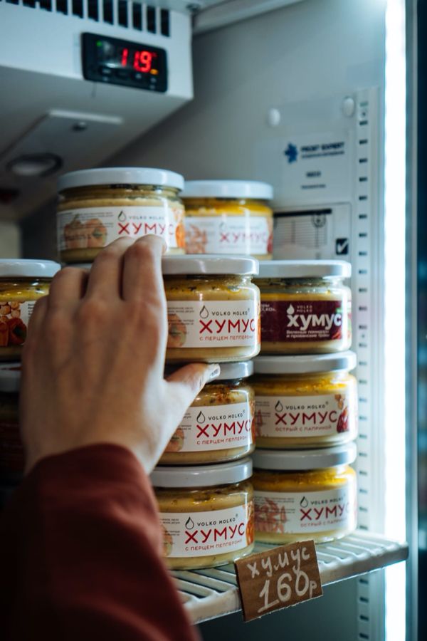 У них вы сможете приобрести наше молоко, сгущёнку, джемы, хумусы и паштеты. И, конечно же, вы сможете обратно вернуть им тару.